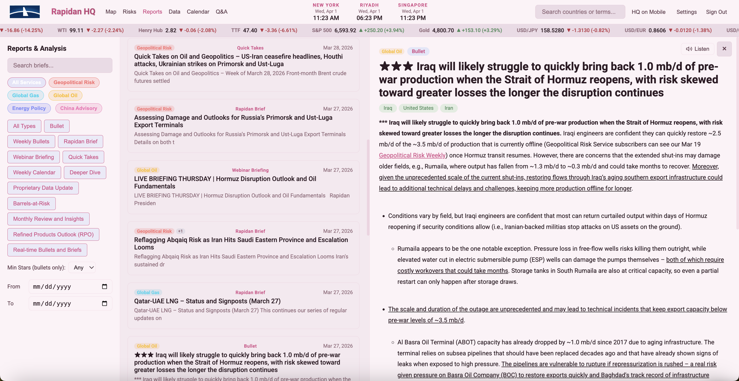 Improved Access to our Reports: Access Rapidan's full library of briefs and research, with improved search and accessibility. Filter by report type, significance rating, or keyword to find exactly what you need. Each report on Rapidan HQ includes direct links to source files.